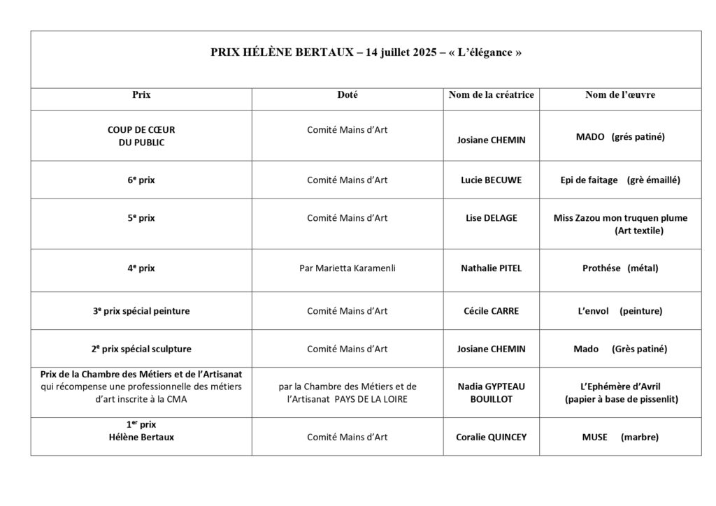 RESULTATS DU PRIX HÉLÈNE BERTAUX 2025 THÈME « L’ÉLÉGANCE »